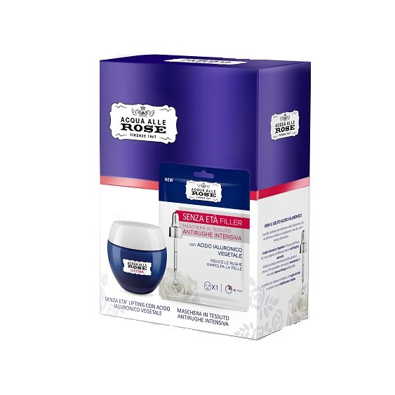 Per un regalo speciale scegli Acqua alle Rose. Scopri il nuovo Cofanetto Trattamento Anti Età pensato per prendersi cura delle pelli segnate dal tempo. I prodotti della nuova linea Senza Età con Acido Ialuronico Vegetale, estratto interamente dalle piante, hanno un'azione anti età distensiva, levigante e riempitiva delle rughe. Contiene: