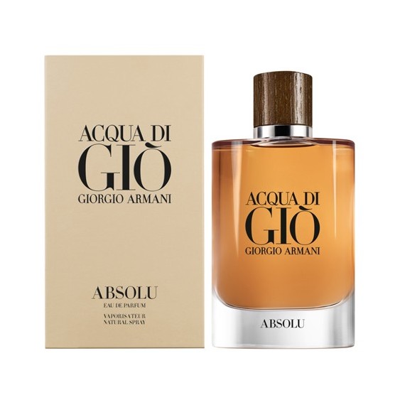 Acqua di Giò Absolu rappresenta un'evoluzione della linea e anche un deciso allontanamento dal capostipite della linea. Il bellissimo flacone color ambra, impreziosito da un tappo in vero legno, contiene una originale miscela che intende celebrare una fusione tra elementi marini ed elementi legnosi, acqua e legno si incontrano, si miscelano in una fragranza affascinante e profondamente maschile. Alla prima vaporizzazione emergono note agrumate, limone, pompelmo e bergamotto offrono un opening fresco, frizzante e dinamico, la nota di pera aggiunge una certa palatabilità dolce e succosa, le note marine portano con sé un sentore ozonico e salino. Il cuore della fragranza rivela note erbacee e floreali che presto sono quasi sommerse dalle splendide e calde note di fondo, profondamente legnose e resinose, che accompagnano l'involuzione della fragranza. Da un opening marino e fresco si arriva a un drydown caldo e profondamente legnoso, con un accenno fumoso, letteralmente agli antipodi, con una fase intermedia appena disegnata in termini floreali. La fragranza è morbida, leggera, con longevità e proiezioni entrambe leggere ma presenti. Può essere indossato in qualsiasi stagione dell'anno e per qualsiasi occasione, dal lavoro all'incontro casual.