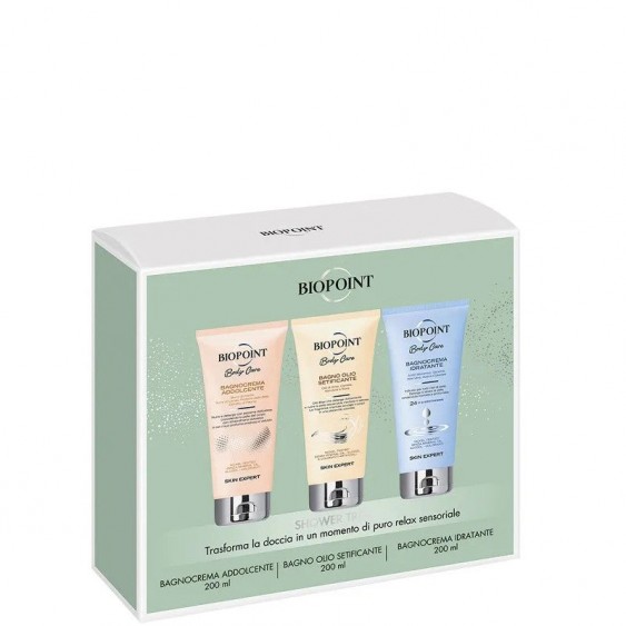 Biopoint Shower Treat - Bagnocrema addolcente 200 ml + Bagno olio setificante 200 ml + Bagnocrema idratante 200 ml