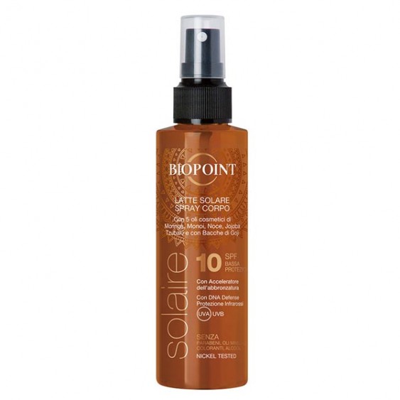 Questo latte solare della Biopoint è un ottimo prodotto per chi è alla ricerca di un solare che protegga la pelle, senza rinunciare all?abbronzatura. Garantisce una protezione 10, lascia la pelle morbida e non unge. Lo applico prima di espormi al sole e resiste anche all?acqua. Contribuisce a dare alla pelle un colorito più omogeneo e dorato, proteggendola dai raggi UV. Lo consiglio soprattutto a chi ha già una pelle olivastra che si abbronza facilmente e che non necessita di una protezione troppo alta. Ottimo anche l?odore e l?assenza di parabeni lo rende un prodotto eccellente per la nostra pelle!