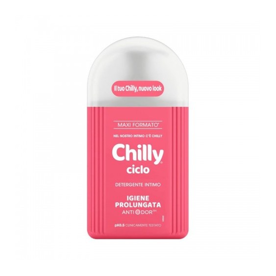 Pensato appositamente per i giorni del ciclo, il detergente intimo di Chilly svolge un'azione antibatterica e contribuisce a difendere l'equilibrio intimo perché è formulato a pH 3.5. In più, la formula purificante è arricchita con molecola anti-odor che neutralizza e riduce l'insorgenza di cattivi odori, facendoti sentire sempre sicura e a tuo agio. Testato sotto controllo ginecologico, esso è adatto all'uso quotidiano. Protezione e igiene assicurate con il detergente intimo di Chilly ciclo!