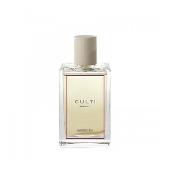 Lo Spray Ambienti Quercea di Culti è una fragranza caratterizzata da frutti rossi, labdano e miele in un prezioso flacone in vetro trasparente scolpito e squadrato.