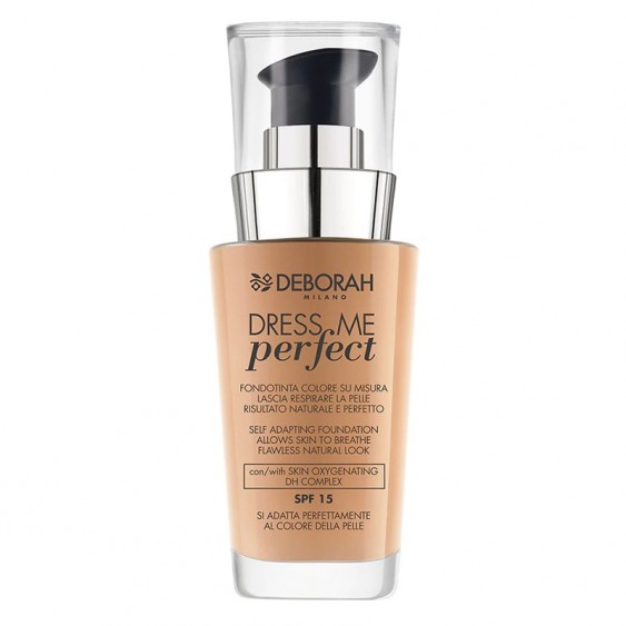 Dress Me Perfect di Deborah Milano non è semplicemente un fondotinta in grado di adattarsi a qualsiasi incarnato, regalando un risultato naturale e perfetto, ma offre un plus innovativo: la sua formula è stata studiata per lasciar respirare la pelle. La sua texture fluida super leggera si fonde a contatto con la pelle, uniformando il colorito e minimizzando le imperfezioni per un effetto naturale e levigato; estremamente scorrevole in applicazione grazie alla presenza di microsfere ad effetto soft focus svolge un’azione opacizzante senza effetto maschera.Con SPF15. Ipoallergenico. Ma la sua unicità risiede nello Skin Oxygenating DH Complex contenuto in formula che promuove l’ossigenazione della pelle, lasciandola respirare e donando un risultato fresco e luminoso.