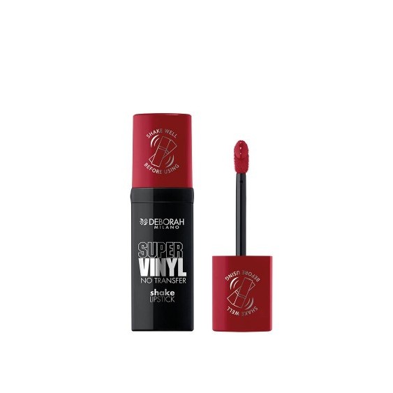 Super Vinyl No Transfer Shake Lipstick è il rossetto indispensabile per labbra perfette e viniliche fino a 16 ore. Creato dai laboratori Deborah Milano, presenta una formula rivoluzionaria che offre un pigmento puro e una lucentezza speculare in un solo gesto.