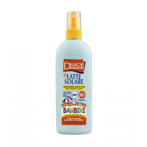 Delice Latte Solare Bambini Spray Resistente All'acqua Con Aloe Vera E Vitamina E SPF 50+ 150 ml