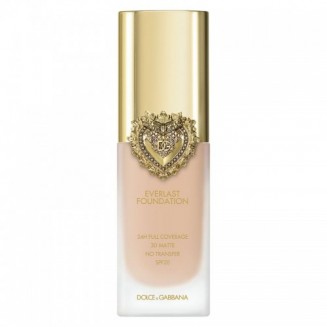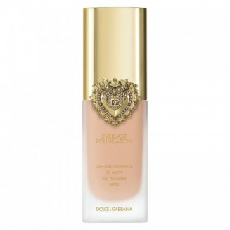 Everlast Foundation è presentato in un ###elegante flacone di vetro###, impreziosito da un ###tappo dorato### sigillato dall'iconico ###Cuore Sacro Dolce&Gabbana###, simbolo di lusso e passione.