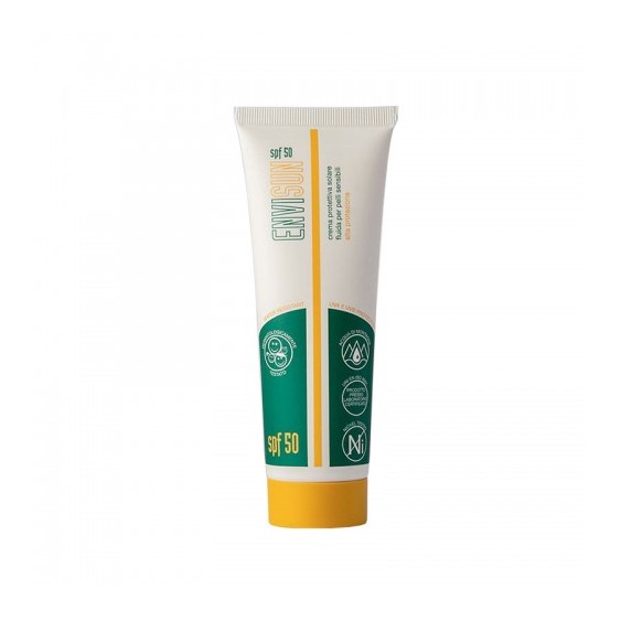 Envisun Spf50 è una crema solare Spf 50 fluida resistente all'acqua consigliata per pelli secche, delicate e a tendenza atopica.