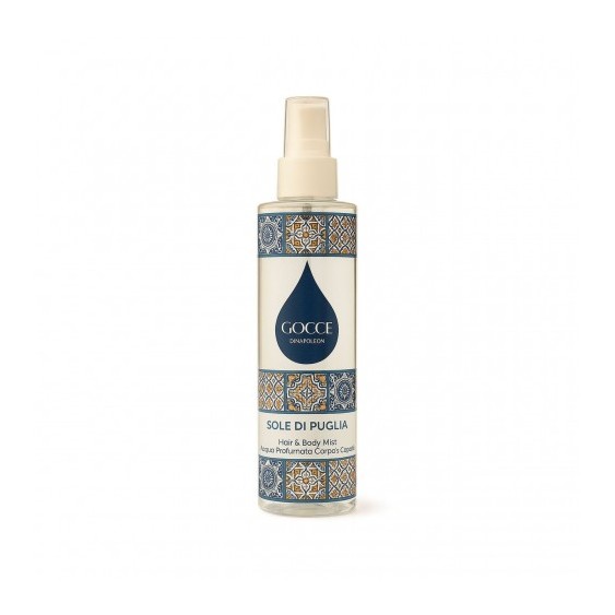 La Hair & Body Mist Sole di Puglia di Gocce di Napoleon è un velo leggero di fragranza delicata, pensato per avvolgere sia la pelle che i capelli in un'aura di pura freschezza.