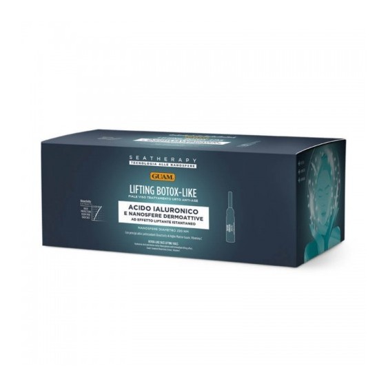 Il trattamento Seatherapy Lifting Botox-Like di Guam ha la duplice funzione di liftare la pelle e di promuoverne in profondità l'elasticità e il tono, con un effetto anti-età immediato il risultato di ritrovare pelle più distesa, attenuazione delle rughe, nuova luminosità al viso e un aspetto più giovane. La formulazione contiene Acido laluronico a basso peso molecolare e Nanosfere Dermoattive i cui peptidi arrivano esattamente dove servono per una mirata azione liftante immediata. Tra i principi attivi del prodotto sono stati inseriti, per un forte potere antiossidante contro i radicali liberi, l'Estratto Bioactivity di Alghe Marine Guam e la Vitamina C. La formulazione del siero così risultante è ricca di principi attivi e senza acqua aggiunta.