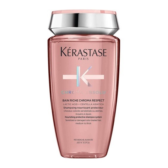 Bain Riche Chroma Respect di Kérastase è uno shampoo nutriente senza solfati che preserva il colore dei capelli colorati, sensibilizzati o danneggiati, in particolare quelli medi e spessi.