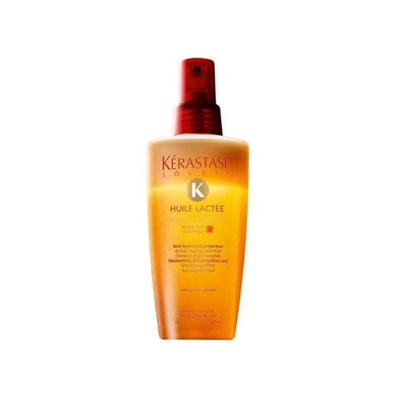 Kerastase Soleil Huile Lactée 125ml è stato per diversi anni il prezioso alleato dei miei capelli al mare e in piscina: questo trattamento professionale infatti protegge i capelli durante l?esposizione al sole esaltandone la lucentezza e assicurando una protezione ottimale contro i raggi UVA e UVB. Delicatamente profumato, si vaporizza in un attimo e non necessita di risciacquo ma occorre fare attenzione poiché, essendo piuttosto oleoso, se applicato in quantità eccessiva tende a far apparire i capelli grassi e pesanti. Ormai impossibile da trovare e probabilmente sold out, per sostituirlo sto provando il Soleil Huile Sirene, il nuovo olio bifasico firmato Kerastase che mi sento ugualmente di consigliare perché si sta rivelando altrettanto valido.