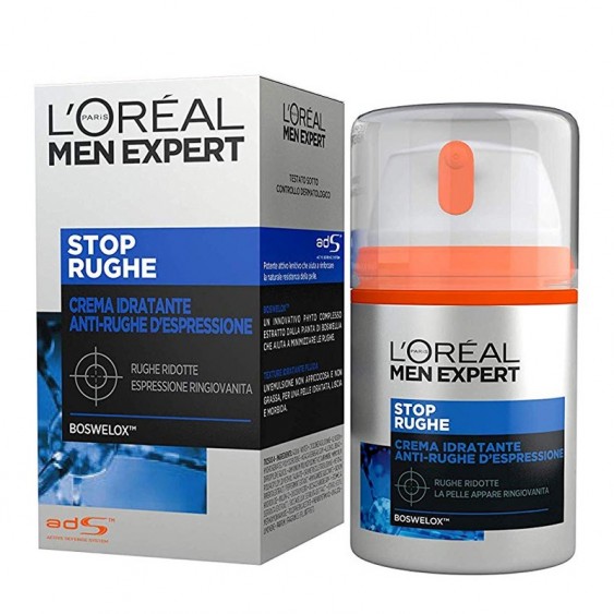 L'Oreal Men Expert Stop rughe è una crema Idratante anti-rughe d'espressione: arricchita con Boswelox per opporsi alle micro-contrazioni della pelle all'origine delle rughe, distende la pelle e riduce visibilmente le rughe.