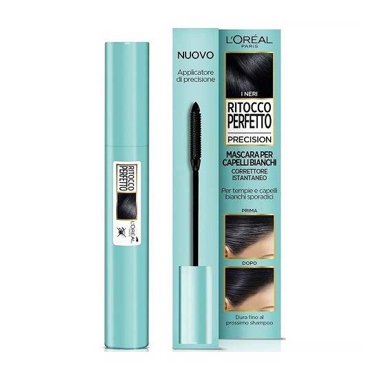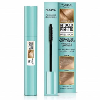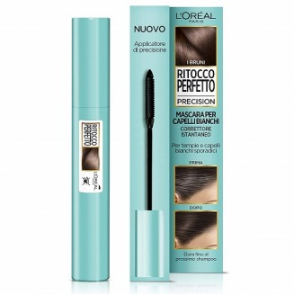 Ritocco Perfetto Precision di L’Oreal è un mascara in crema gel per il ritocco dei capelli bianchi dotato di un innovativo scovolino, che copre rapidamente i fili sporadici e i capelli bianchi di riga e tempie. Si lava via con lo shampoo.