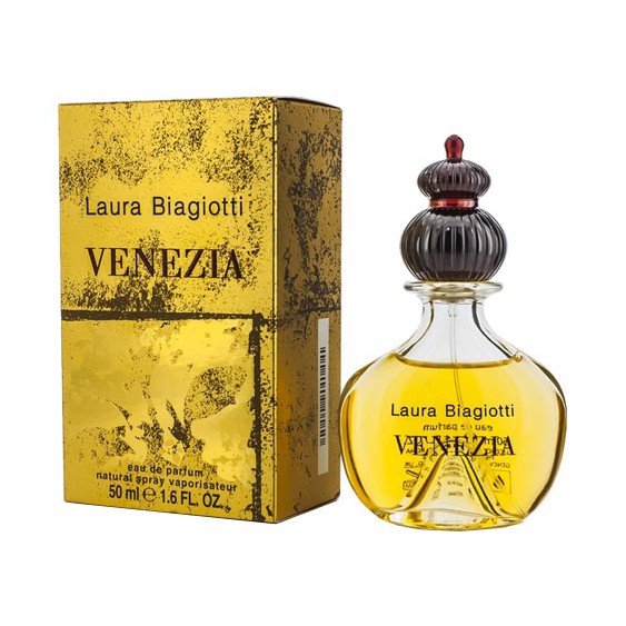 Laura Biagiotti Venezia si apre con ribes nero in testa, succulento e scuro ma evocativo dei canali silenziosi e caratteristici di un città unica. Poi tanta luce e tanto sole, con osmanto e gelsomino, note forti e vivaci quindi, in chiusura invece una sofisticata resina che rende Venezia una fragranza inimitabile e sempre gradevole. Si può azzardare anche come profumo unisex: dopo l'apertura infatti è deciso e compatto e quindi perfetto anche per il pubblico maschile. Se non bastasse viene proposto oltretutto ad un prezzo eccezionale!