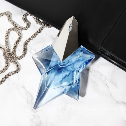 Ed è sempre di Thierry Mugler stesso l’idea di racchiudere Angel in un flacone a forma di stella. Rivangando le sue memorie di infanzia in cui fissare le stelle lo calmavano, ha dichiarato: «Erano una presenza magica e al tempo stesso molto reale, lontana ma anche incredibilmente vicina, che mi lanciava segnali di conforto».