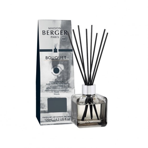 Bouquet Parfumé Cube, speciale per l'odore di tabacco, neutralizza il cattivo odore, diffondendo un lieve profumo legnoso, con un iniziale aroma di cedro, un cuore fresco di aghi di pino ed una coda di ambra e cedro.