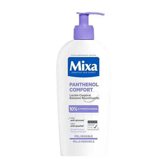 Il Balsamo Corpo Mixa Panthenol Comfort è studiato per le esigenze delle pelli a tendenza atopica. Contiene il 10% di glicerina per un’idratazione intensa e pantenolo ad azione lenitiva. La sua texture ricca e non grassa dona sollievo immediato al prurito e protegge la pelle per 48 ore*. Formula ipoallergenica, senza profumazione, testata al 100% su pelle sensibile. *Studio dermatologico su 61 soggetti dopo 4 settimane di utilizzo.