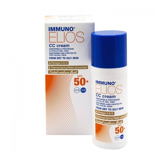 Immuno elios CC cream Medium ha un colore beige dorato che uniforma il colore della pelle. I filtri solari chimici fotostabili permettono una protezione ad ampio spettro e prevengono i danni al DNA cellulare.
