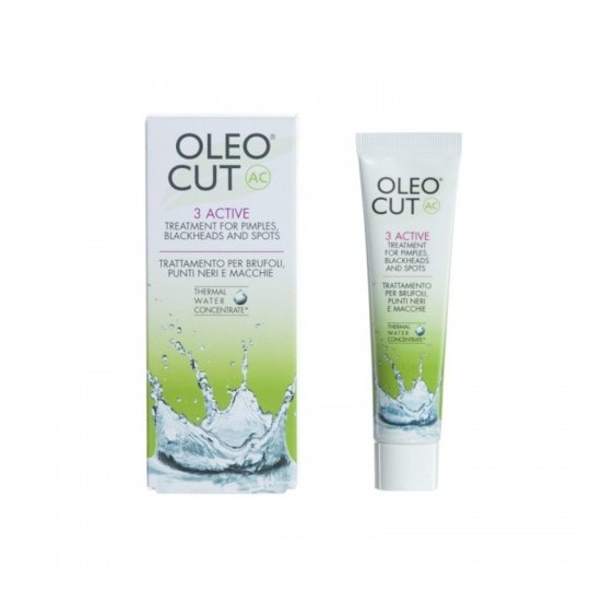 Oleocut 3 Active è un crema gel viso per il trattamento intensivo dell'acne di moderata e severa entità grazie all'azione sinergica di tre ingredienti: acido azelaico, acido fitico e acido cogico. Il gel forma una barriera fisica che protegge la pelle da aggressioni batteriche e fattori di stress esterni. Uniforma e svolge un'azione cherolitica grazie agli ingredienti attivi.
