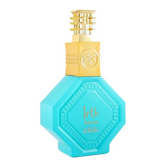 Irth Fairooz Eau de Parfum: un'esperienza olfattiva che cattura l'eleganza senza tempo del turchese e la ricchezza di un patrimonio culturale, rivelando una sinfonia di note fresche, floreali e legnose.