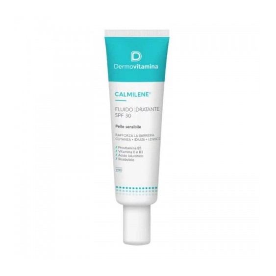 Dermovitamina Calmilene Fluido Idratante è formulato con acido ialuronico, pantenolo (provitamina B5), niacinamide (vitamina B3) e vitamina E, che agiscono sinergicamente per un'azione idratante e lenitiva.