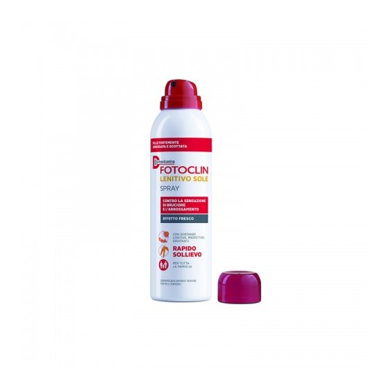 Il Dermovitamina Fotoclin Lenitivo Sole Spray aiuta a lenire la sensazione di bruciore e arrossamento, in caso di prolungata esposizione a radiazioni solari e lampade U.V., e reazioni cutanee conseguenti a peeling chimici, epilazione, trattamenti dermatologici.