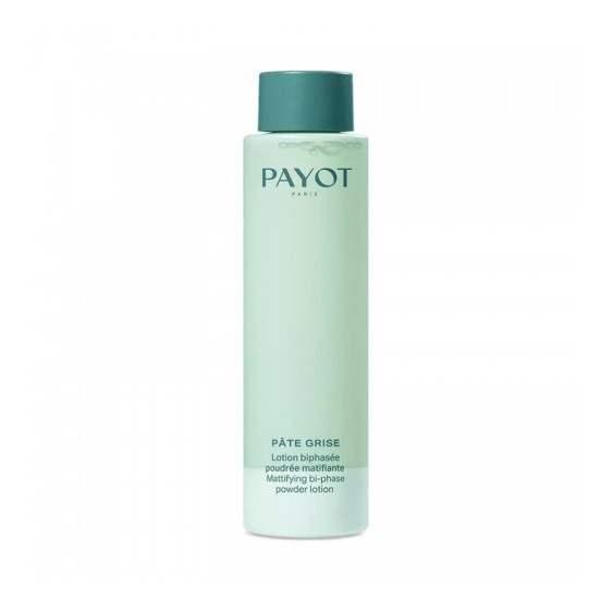 Lotion Biphasèe Poudrèe Matifiante della linea Pâte Grise di Payot è una lozione opacizzante appositamente formulata per la pelle mista e grassa soggetta a frequenti eccessi di sebo, questa lozione con estratto di zinco rinfresca, deterge e purifica la pelle. In una sola applicazione, l'eccesso di sebo viene regolato e la pelle è opacizzata.
