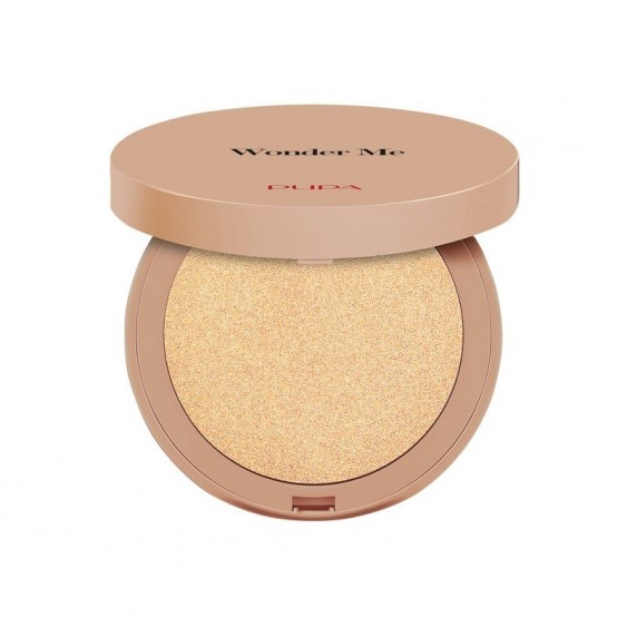 Wonder me Glow di Pupa è un illuminante compatto ibrido dalla straordinaria texture impalpabile, che si fonde con la pelle con la brillantezza e la leggerezza tipiche di un highlighter fluido.