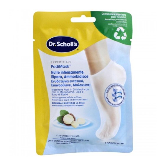 La PediMask™ Expertcare di Dr. Scholl's è una maschera piedi in tessuto specificamente formulata per nutrire intensamente, riparare e ammorbidire la pelle secca dei piedi. La sua azione intensiva aiuta a rigenerare e proteggere la pelle, lasciando i piedi visibilmente più morbidi, lisci e idratati. Questa maschera è clinicamente testata e sfrutta l'innovativa tecnologia HydroRestore™ per risultati efficaci e duraturi.
