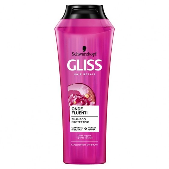 Lo Shampoo Protettivo Gliss Onde Fluenti di Schwarzkopf, grazie alla formula con Complesso di Biotina e Fiore di Peonia, ripara i danni dalle radici alle punte e risponde ai bisogni dei capelli lunghi e ondulati.