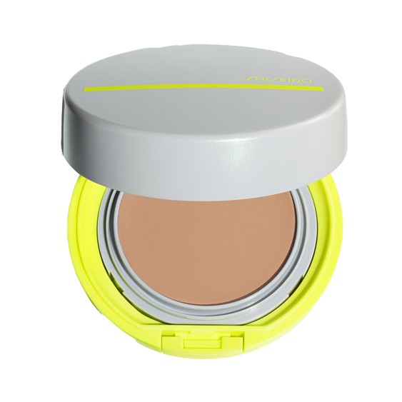Protezione solare compatta SPF 50+ Shiseido Sports BB, ideale per attività all'aperto, offre un finish naturale e fresco, resistente all'acqua e al sudore.