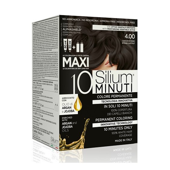 Prodotto professionale per capelli Silium 10 minuti Maxi Colorazione Permanente 4.00 Castano Intenso