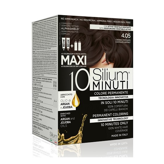 Prodotto professionale per capelli Silium 10 minuti Maxi Colorazione Permanente 4.05 Castano Cioccolato