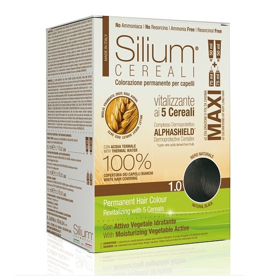Prodotto professionale per capelli Silium Maxi Colorazione Permanente ai 5 Cereali 1.0 Nero Naturale