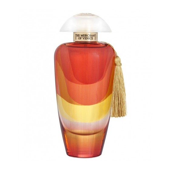 Racchiusa in un flacone che è un'opera d'arte, questa fragranza si svela in un'elegante ampolla dai caldi riflessi giallo e rosso, evocando la magia di un tramonto veneziano sul mare. Il design, ispirato agli antichi vetri di Murano, è impreziosito da un raffinato fiocco dorato e da un tappo finemente cesellato con la rosa dei venti, simbolo eterno di viaggi e scoperte.