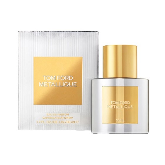 Tom Ford Métallique, plasmato di elegante brillantezza, è un profumo che ammalia i suoi ammiratori con un bagliore di moderna e risoluta femminilità. Con luminosità e in un’esplosione floreale, un’armatura lucente di note metalliche aldeidate rivela la sensualità dei fiori bianchi delle note di cuore, per terminare con accordi di sandalo e vaniglia.