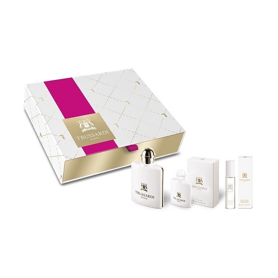 Ho acquistato questo cofanetto trussardi donna eau de parfum da 50 ml per farmi un regalo elegante. La confezione è molto carina e ben curata, contiene 3 profumi di varie grandezze così da poter portare trussardi sempre con se. Il formato miniatura entra anche in una pochette e per questo posso portarlo ovunque, mentre il formato travel è perfetto da portare in vacanza. Infine c'è un trussardi da 50 ml contenuto in una elegante boccetta che dona un tocco di classe anche nella zona in cui viene riposta. Lo consiglio molto, è perfetto per se stesse e per fare un regalo originale.