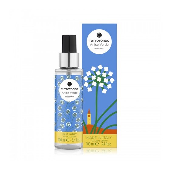 Dona freschezza al tuo corpo ogni giorno. Questo prodotto è un deodorante dalla formula delicata antiperspirante, che protegge la pelle prevenendo la formazione di cattivi odori. Grazie agli estratti di Anice Verde, Sambuco e Liquirizia svolge una profonda azione purificante ed idratante. L'Anice è una pianta erbacea spontanea che da secoli viene coltivata per le sue proprietà aromatiche e medicinali. Nel Piceno in particolar modo, l'Anice viene lavorato dal XV secolo. Ed è proprio a Castignano che si coltiva un ecotipo di Anice Verde particolare, più ricco in profumo e in dolcezza, grazie alla straordinaria concentrazione di anetolo.