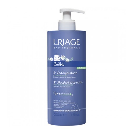 Questo latte vellutato e cremoso idrata intensamente la pelle delicata dei bebè e previene la secchezza cutanea. La sua formula comprende il complesso naturale [Acqua Termale di Uriage + Stella Alpina Bio] associato con Squalano vegetale che crea un film protettivo con un'azione nutriente duratura.