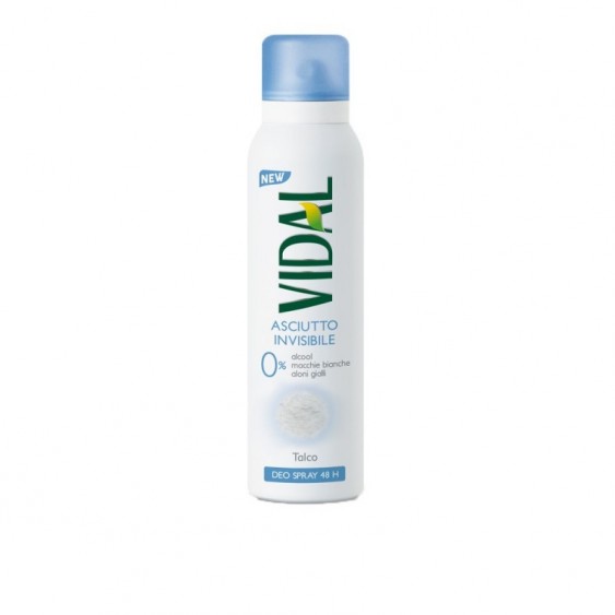 Asciutto Invisibile Talco è il deodorante Vidal che non contiene alcool, per rispettare anche le pelli più delicate. Regola la sudorazione e controlla gli odori, garantendo un effetto asciutto fino a 48 ore, e sprigiona un piacevole profumo di talco. Non lascia macchie bianche sui tessuti scuri e previene la formazione di aloni gialli su quelli chiari. Dermatologicamente testato.