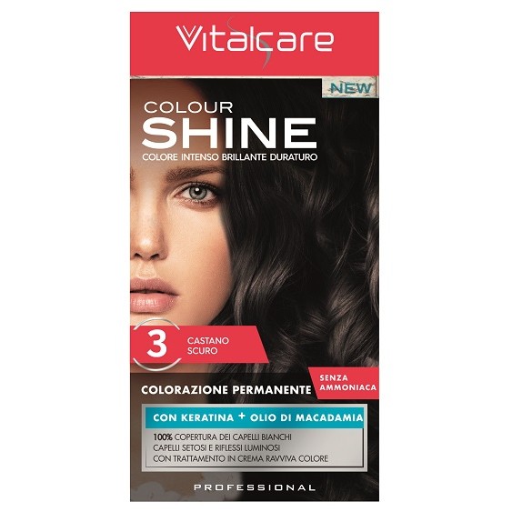 Prodotto professionale per capelli Vitalcare Colour Shine Colorazione Permanente Senza Ammoniaca 3 Castano Scuro
